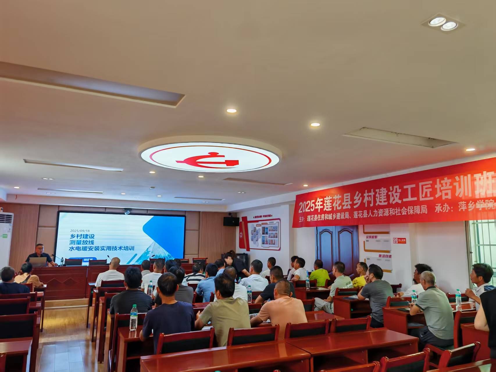9月底,由莲花县住房和城乡建设局、莲花县人力资源和社会保障局主办,萍乡学院继续教育学院承办的2025年莲花县乡村建设工匠培训班顺利结业。